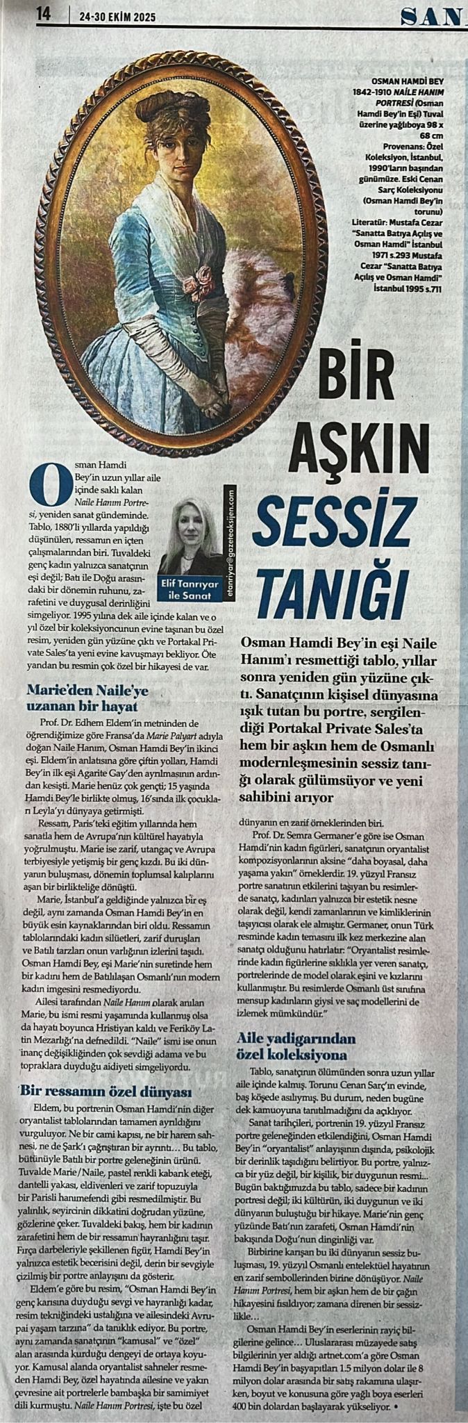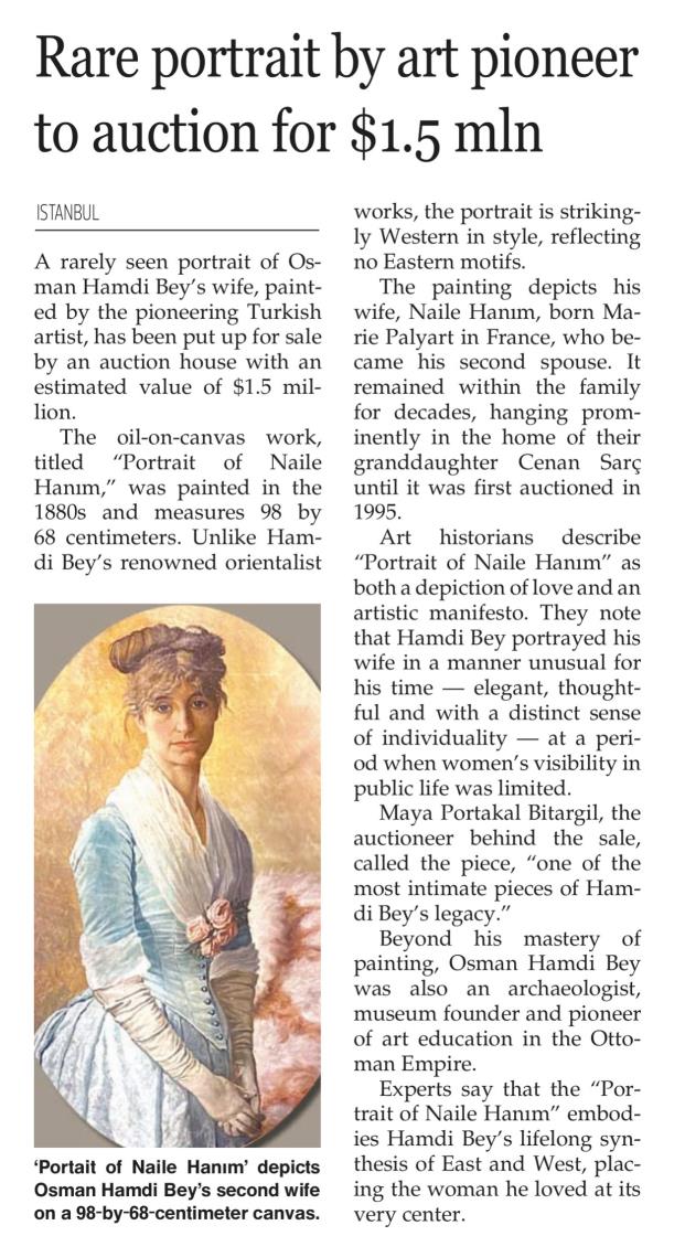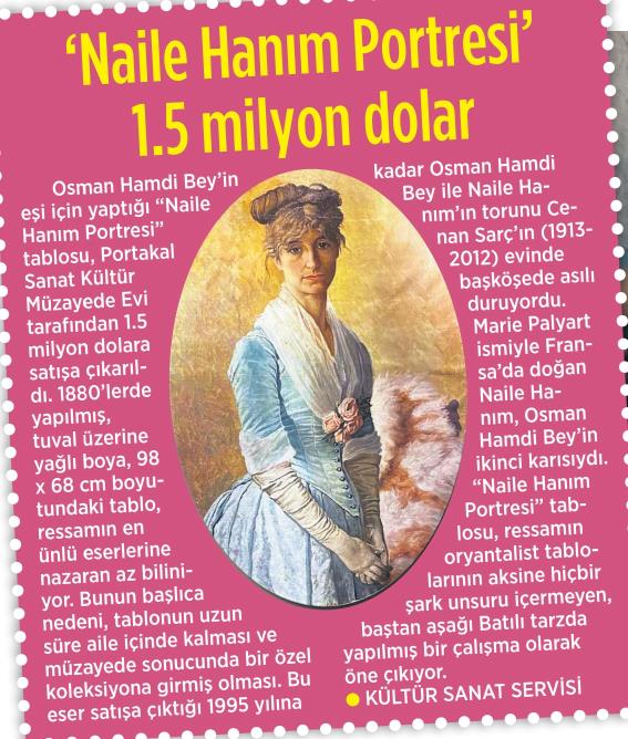 Osman Hamdi Bey'in eşi için yaptığı 'Naile Hanım Portresi' tablosu, Portakal Sanat Kültür Müzayede Evi tarafından 1.5 milyon dolara satışa çıkarıldı.
