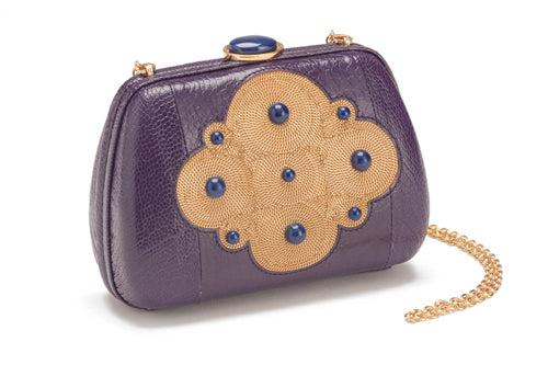 Mor patent gold desende rodium kaplı lapis lazuli taşlı zincir askılı gece çantası