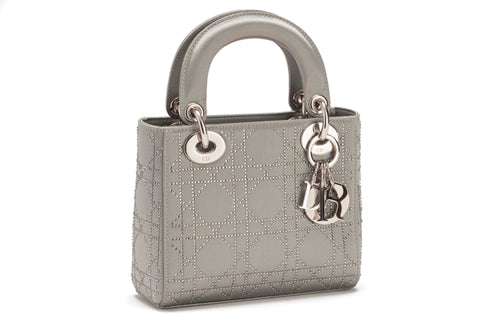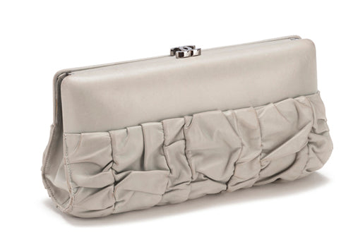 Gri lambskin üstü saten rhinestone taşlı gece çantası