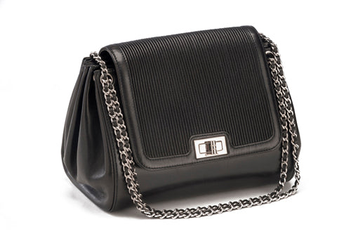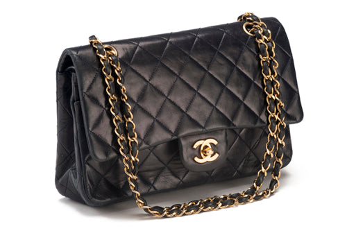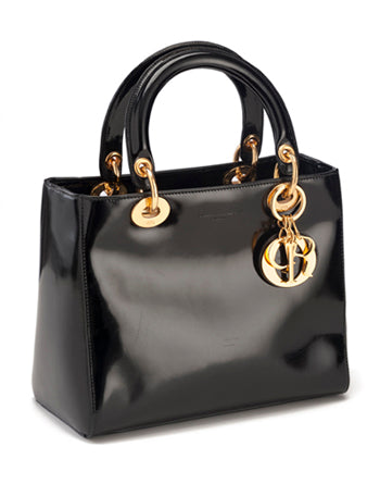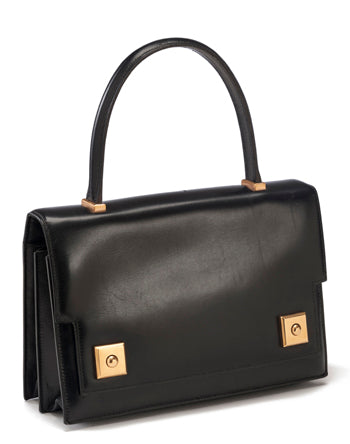 Siyah calfskin el çantası altın kilit ve çift anahtarlı