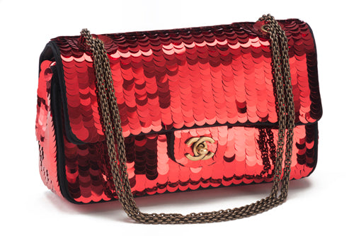 Kırmızı sequin çift c inisyalli zincir askılı gece çantası