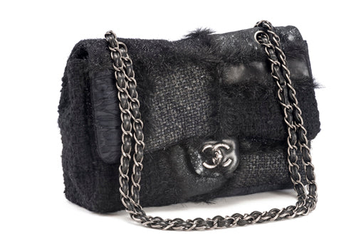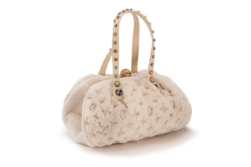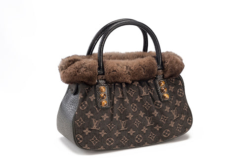 Monogram denim snowflake taşlı ve chinchilla fur çanta