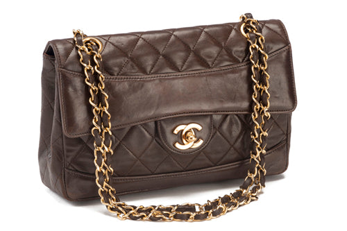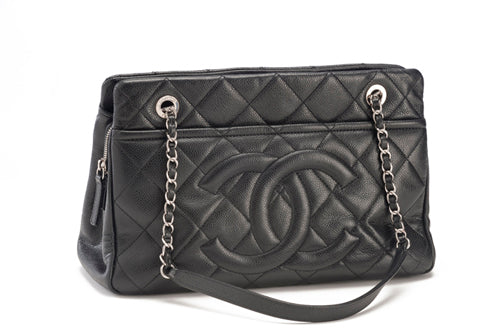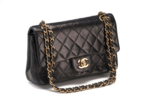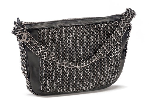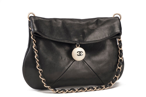 Siyah lambskin çift c inisyalli zincir-deri askılı çanta