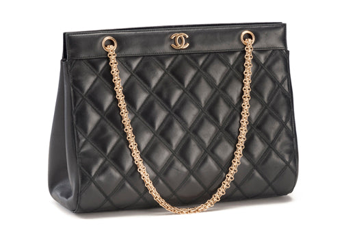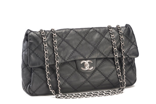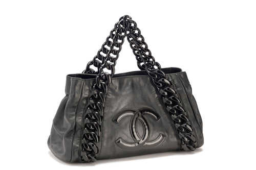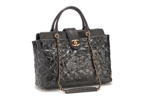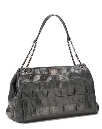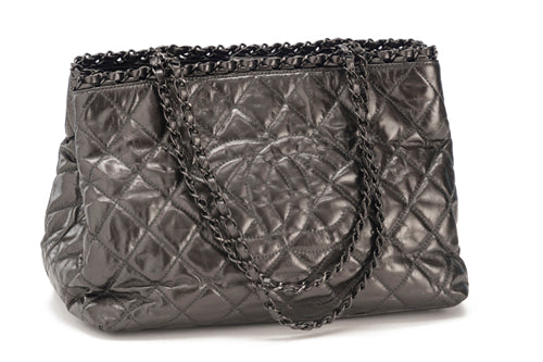 Siyah distressed lambskin kapitone zincir askılı çanta