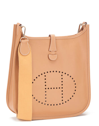 Bej epsom önü H işlemeli pamuk askılı çanta