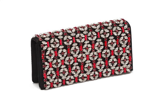 Boyut: Saten kırmızı ve beyaz rasostone taşlı gece çantası