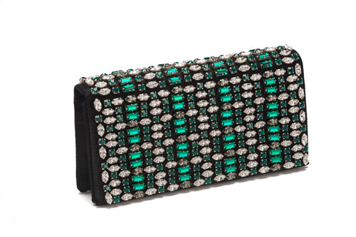 Saten yeşil ve beyaz rasostone taşlı gece çantası