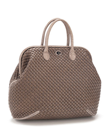 Füme calfskin sepet dokuma sapı ve çevresi python el çantası