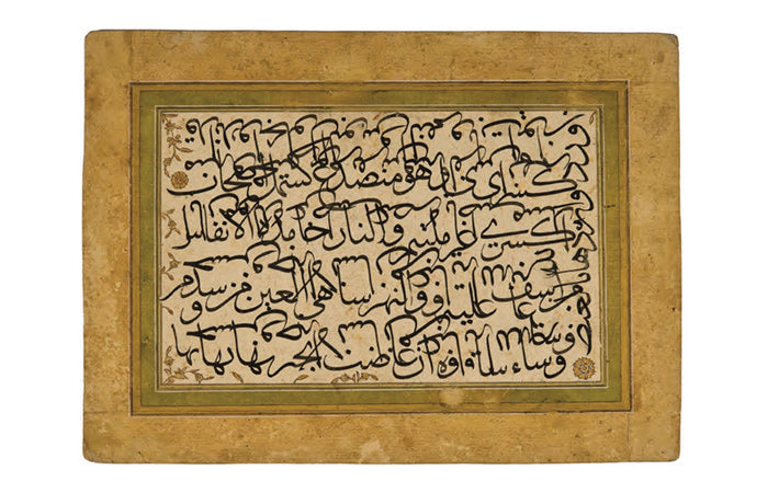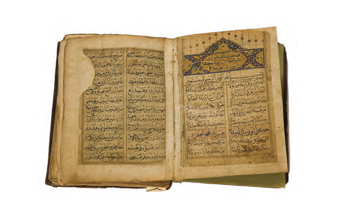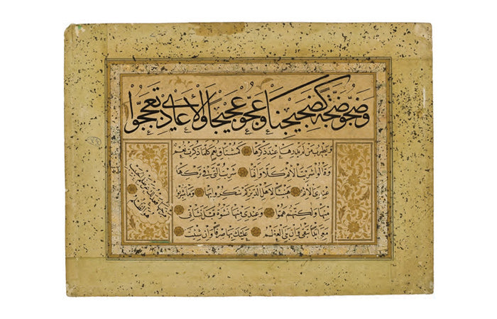 Ketebeli, h.1209 (1794) tarihli. Nesih hatla yazılı. Bordürü altın çiçek motifleriyle tezhiplenmiş.