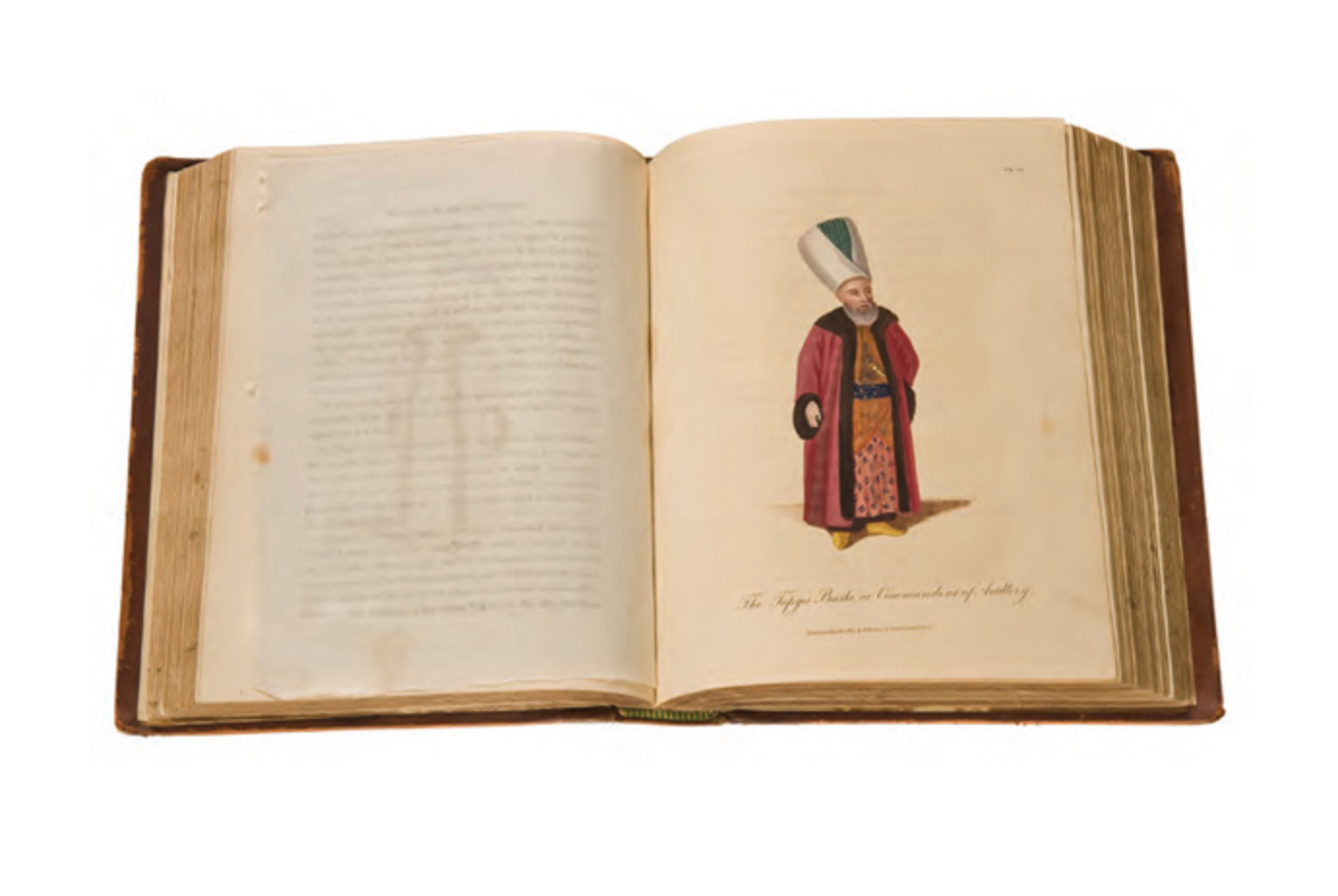 C/ Elias Habesci, The Present state of the Ottoman Empire containing a more accurate and interesting account of the religion, government, military establishment, manners, customs, and amusements of the Turks than any yet extant. Including a particular description of the Court and Seraglio of The Grand Signor. And interspersed with many singular and entertaining anecdotes. London, R. Baldwin, MDCCLXXXIV [1784], xvi, [8], 443 s. Döneminin cildinde.