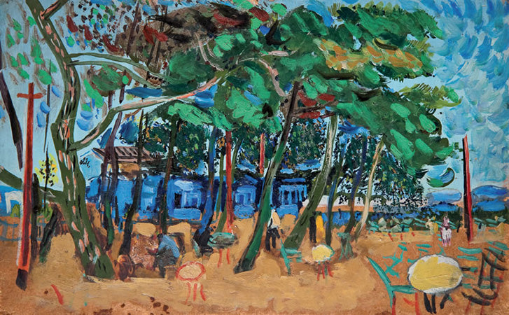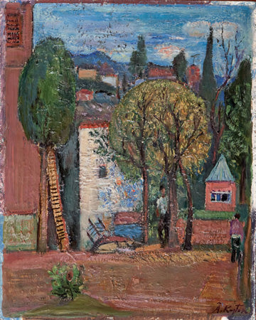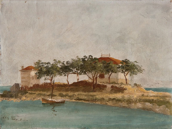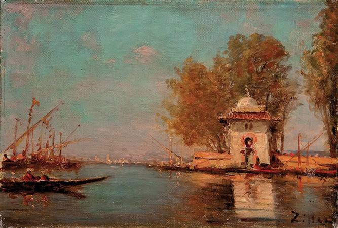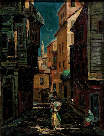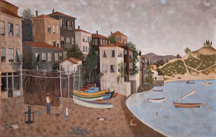 Bir İstanbul aşığı Hoca Ali Rıza. Tüm hayatını karış karış dolandığı, izlemeye doyamadığı ve her seferinde yeni baştan keşfettiği İstanbul’un doğal güzelliklerine adayan Hoca Ali Rıza, ağaçların gizlediği küçük bir burundaki iki evi ve kıyıya yanaşan küçük bir yelkenliyi küçük bir kompozisyona ustalıkla, adeta aşkla yerleştirmiş. Resim göstermeyi ve işaret etmeyi değil, kaçamak bir bakışın ardındaki gizemi duyumsamamızı istiyor. (*) Sanatçının biyografisi 198 sayfadadır.