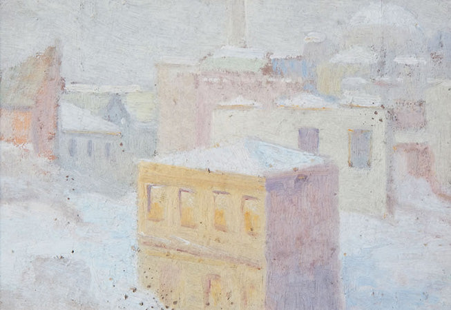 1984’te İstanbul’da ayımlanan ve Adnan Coker tarafından hazırlanan “Avni Lifij Poşadlar” kitabı, s.71’de yer yapmaktadır. Karlar altında bir Osmanlı mahallesi, sırtını bir başka binaya dayamadan ayakta duran bağımsız, müstakil bir ev. Avni Lifij’in sembolist dünyasına bu denli denk düşebilecek başka kaç imge vardır? Lifij’de döneminin pek çok ressamı gibi bir kent gezgini. Yalnız onun merakı boğazın sularına doğru değil daha çok sıkışık sokak dokusuna, mahalle aralarına kayıyor. Kimi zaman karlar altında yürüyen bir figür, kimi zaman sokak dokusunun bittiği yerde beliren küçük bir meydan... Lifij, İstanbul’un turistik güzelliklerinde değil yaşamın kendisini ele verdiği kuytu sokaklarında dolanıyor. Bu küçücük poşad belki de sanatçının kendisiyle özdeşleştirdiği kutu gibi bağımsız bir evin kütlesini ve birbiri ardına geometrik oyunlar sergileyebileceği irili ufaklı ev grubunu görünür kılıyor. Her zamanki ustalığıyla fırçasını yüzeyde incelikle kaydırıyor, boyayı ve renkleri sanki tek bir tüpten çıkmışçasına tüm resme yayıyor sanatçı.