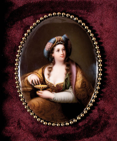 a. “Hirsch 8 Kaiser San Fransisco” Gövdesi mine tekniğiyle kobalt mavisi zemin üzerine altın yaldız madalyon motişeriyle işli. Madalyonların içlerinde kadın figürleri yer almakta.