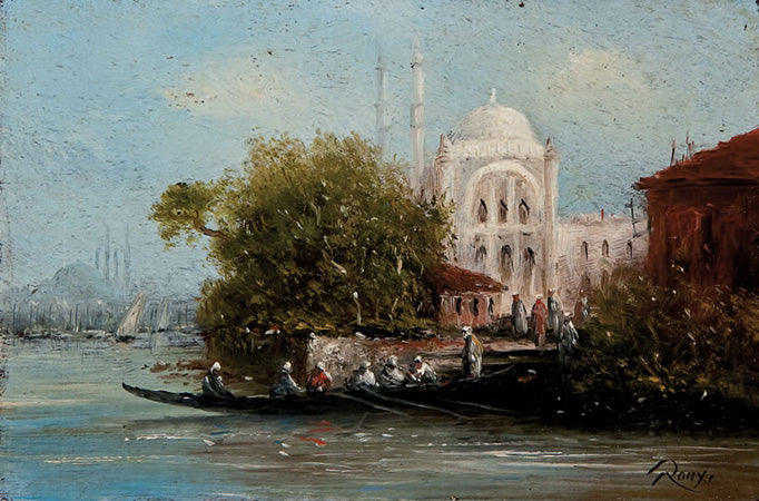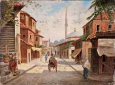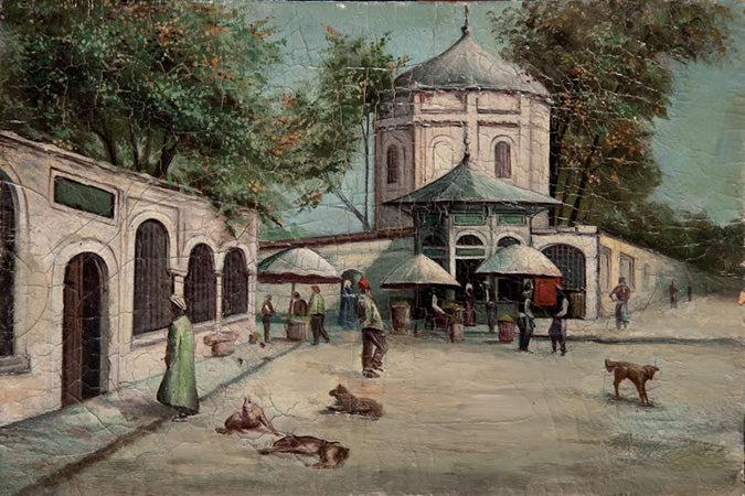 Eski Türkçe imzalı, h.1328 (1910) tarihli. Tuval üzerine yağlıboya.