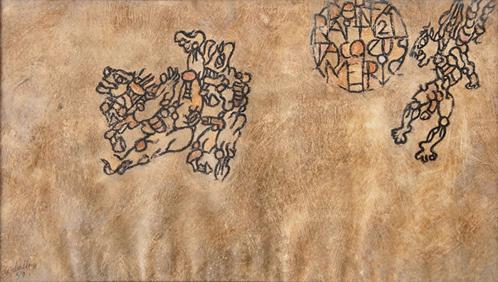 İmzalı, 1950 tarihli. Ahşap üzerine yağlıboya.
