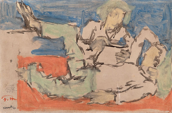 İmzalı, 1961 tarihli. Tuval üzerine yağlıboya. Tuvalin arkası “6 Aout 1961” yazılı.